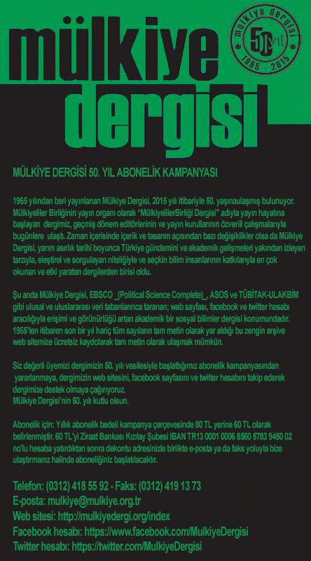 Location: Süreli Yayınlar Koleksiyonu / Periodicals Collection