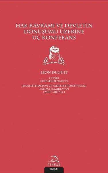 Hak kavramı ve devletin dönüşümü üzerine üç konferans / Leon Duguit ; çeviri Edip Serdengeçti ; transliterasyon ve sadeleştirmeyi yapan, yayıma hazırlayan Emre Partalcı ; editör Kasım Akbaş, Ertuğrul Uzun.